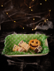 Una cajita encantada que al abrirla sientes la magia de Halloween. Trae dos paninis fantasma, una dulce calabaza rellena de mermelada de frutos rojos y un fantasma chocolatoso.